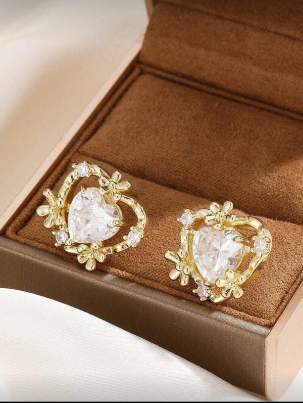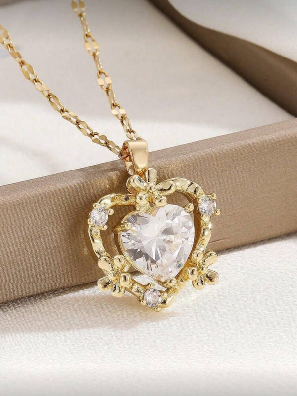 Stainless steel ketting met hartvormige hanger en oorbellen